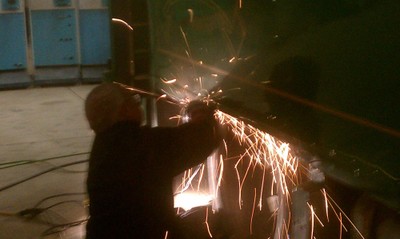 Sarah decided that dremel tools are for sissies. She wants a real grinder that shoots sparks ten feet. Randy is hard at it. Thanks so much.